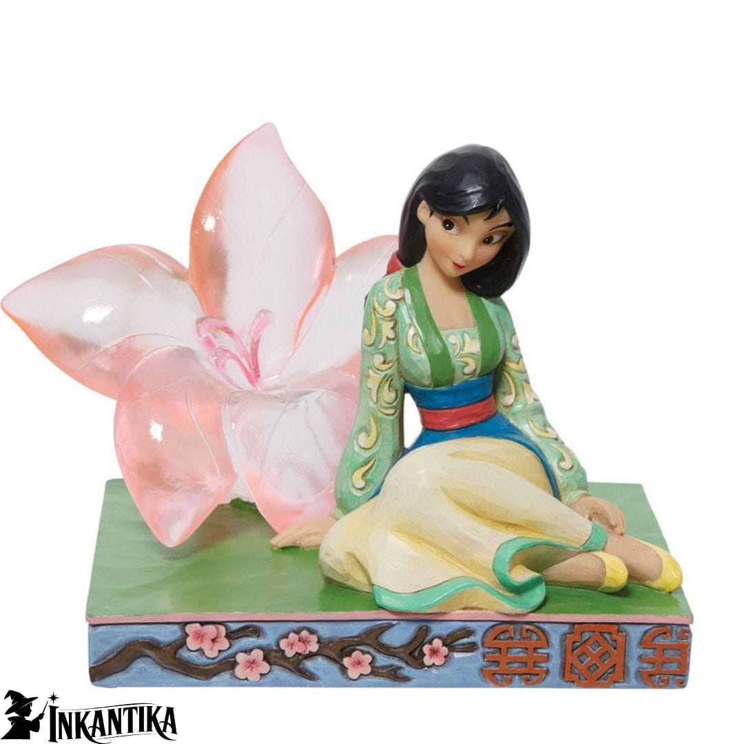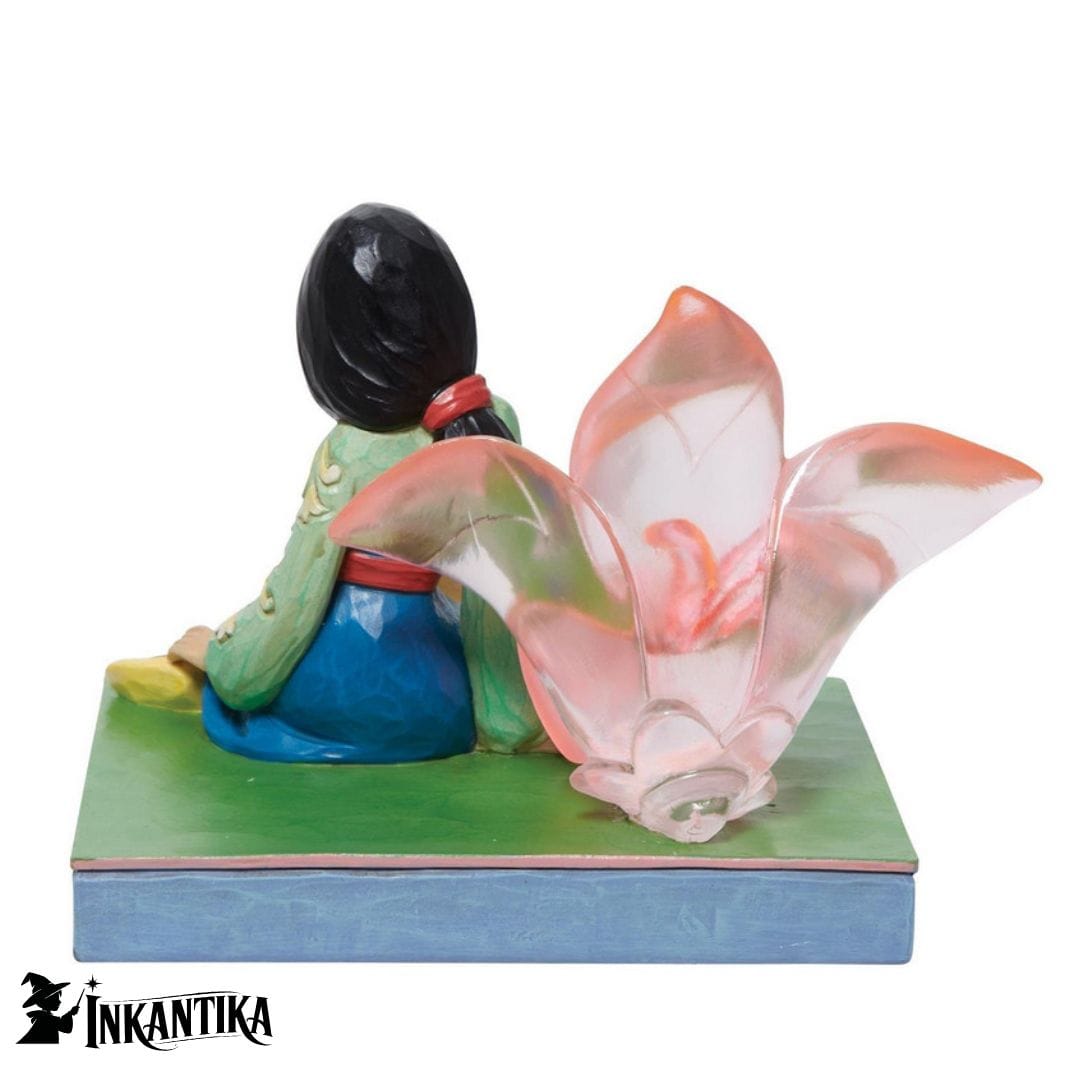 Questa elegante scultura firmata Jim Shore per la collezione Disney Traditions rende omaggio a Mulan, la principessa guerriera che ha sfidato le convenzioni per onorare la propria famiglia. Seduta con grazia accanto a un magnifico fiore di magnolia traslucido, Mulan incarna la perfetta armonia tra bellezza, saggezza e coraggio.