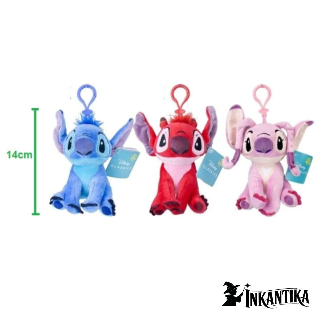 Piccolo, tenerissimo e portatile: peluche Stitch da 14 cm con clip, assortito tra personaggi come Angel o Leroy. Ideale per appendere allo zaino, borsa o chiavi.