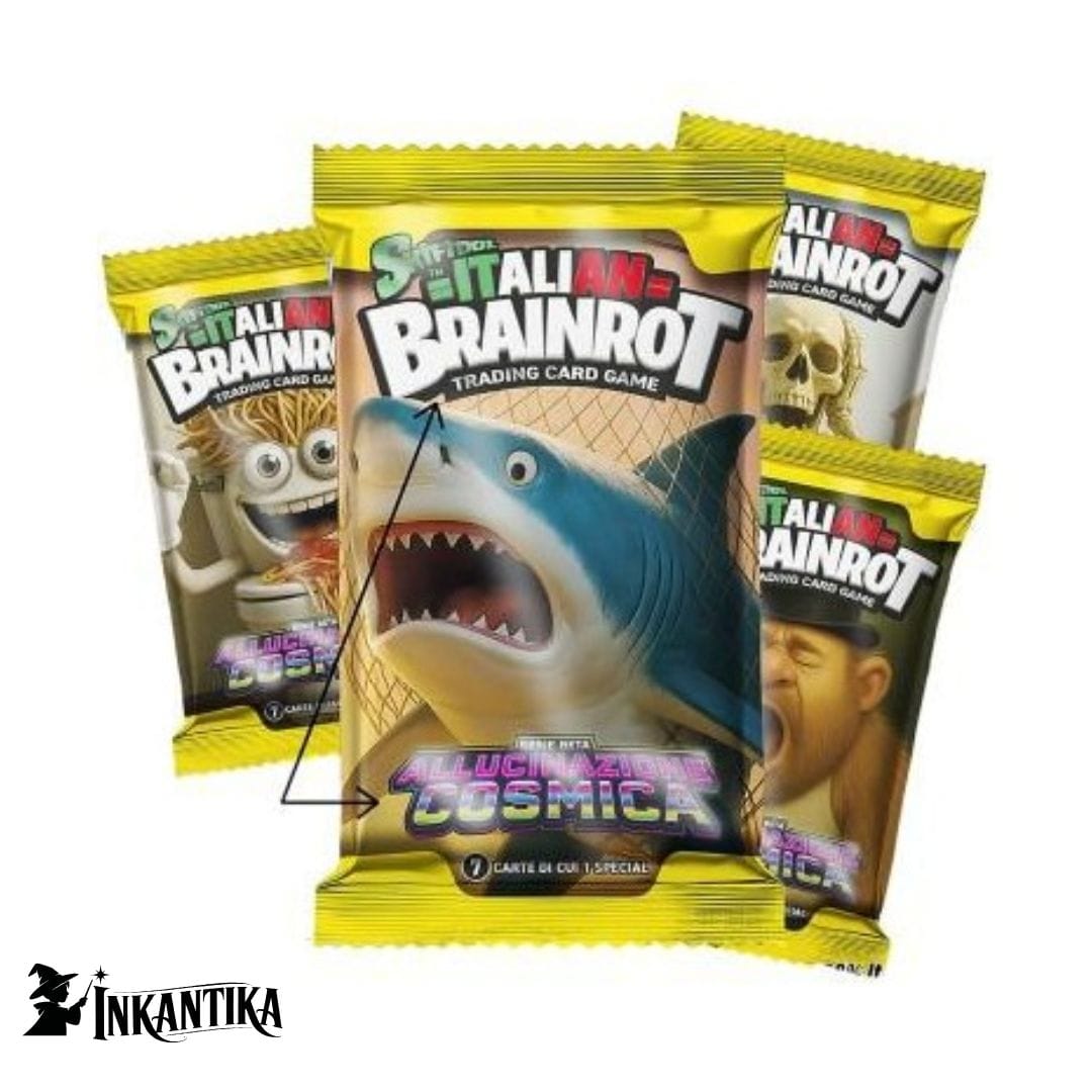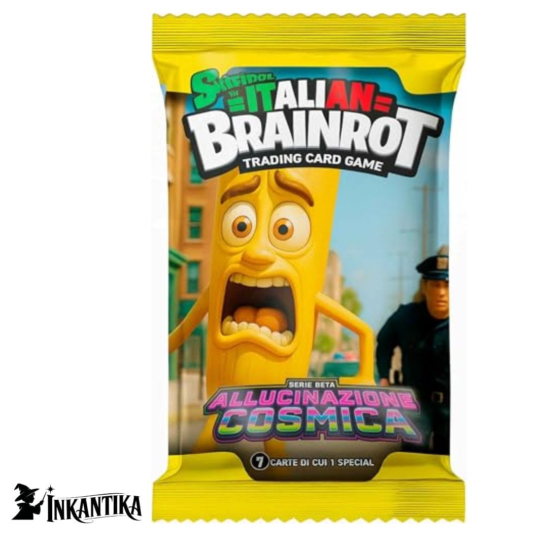 Entra nel mondo surreale di Brainrot con la busta ufficiale Skifidol Italian Brainrot, che include 7 carte collezionabili di cui una carta speciale “Allucinazione Cosmica” dal design unico e raro.