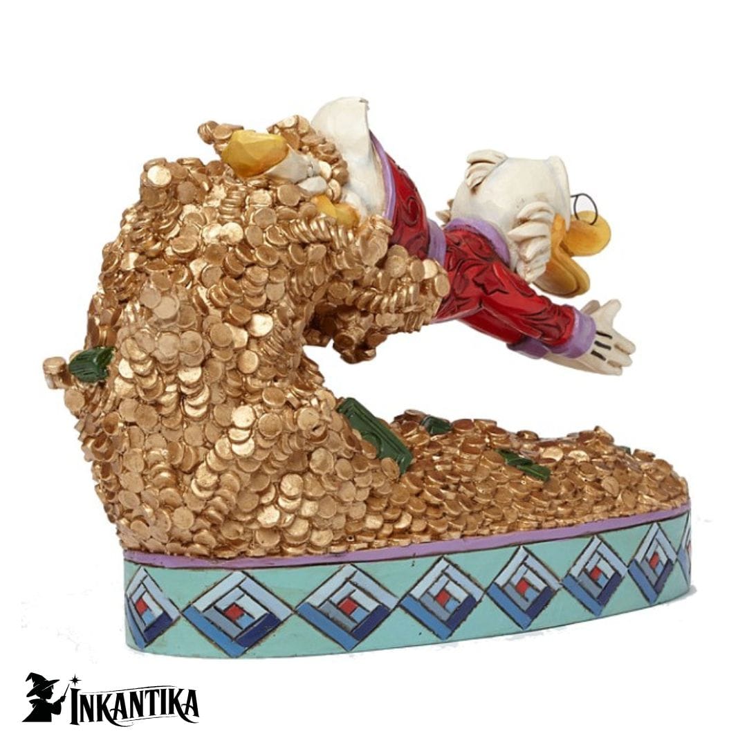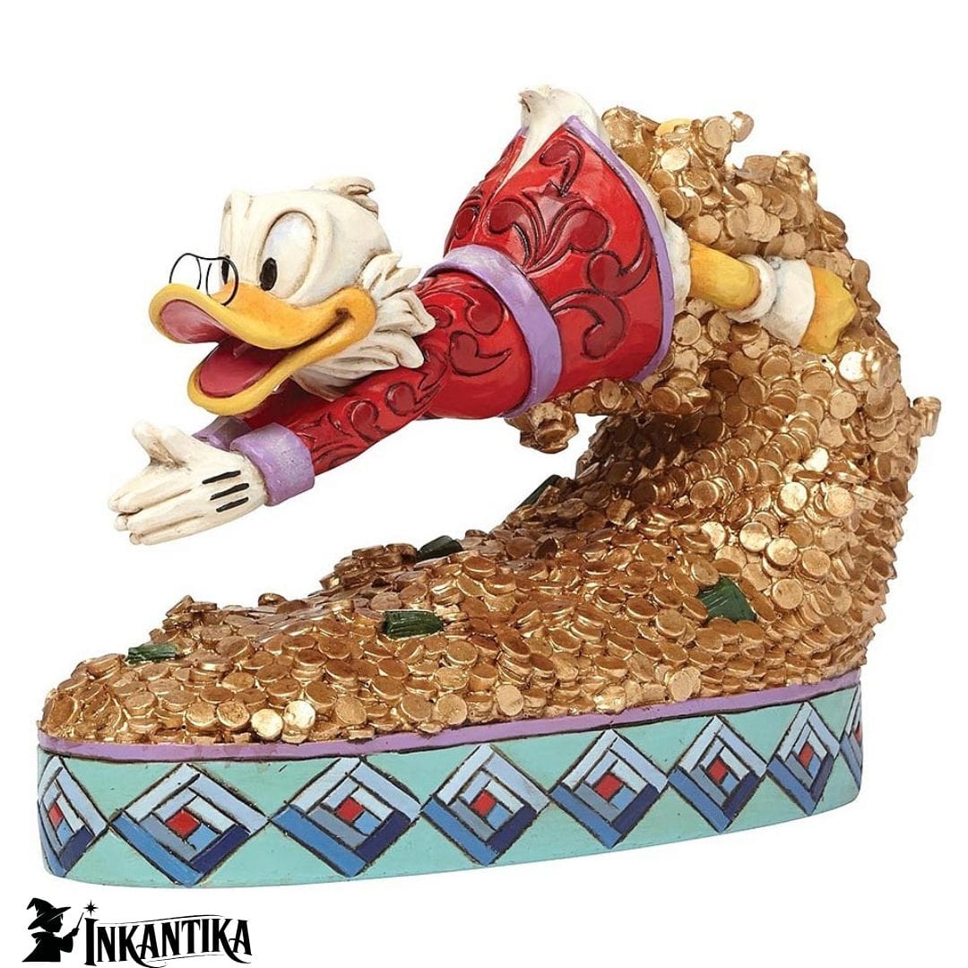 esta statuetta fa parte della linea Disney Traditions firmata Jim Shore. Rappresenta Zio Paperone intento a tuffarsi nella sua fortuna: monete, lingotti, ricchezze sparpagliate da cui Paperone emerge con il sorriso tipico. È un pezzo che mescola ironia, passione per i dettagli e amore per i personaggi Disney.