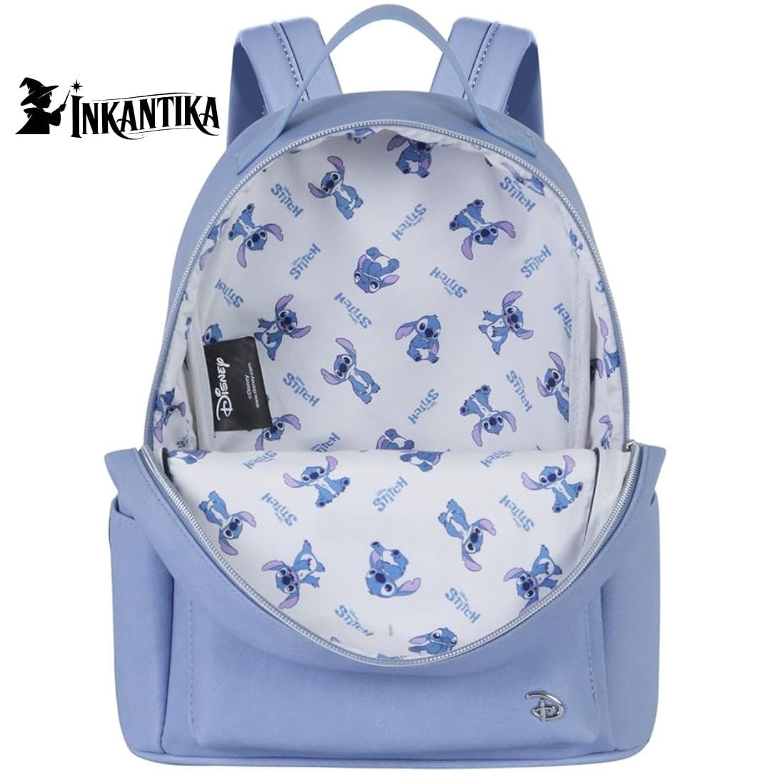 Il corpo del zaino è realizzato con materiali rigidi (steel-frame o struttura rinforzata), mentre l’esterno sfoggia decorazioni con Stitch e motivi iconici di Lilo & Stitch. Il risultato è un accessorio capiente e resistente, che non perde in personalità.