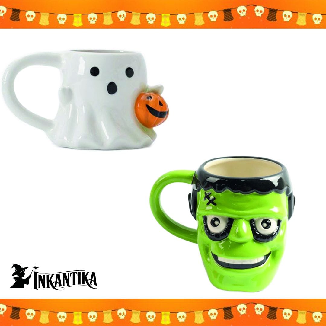 Sorseggia la magia di Halloween! Le tazze Inkantika in ceramica 3D a forma di Fantasma o Frankenstein sono perfette per colazioni, regali o decorazioni spaventose!